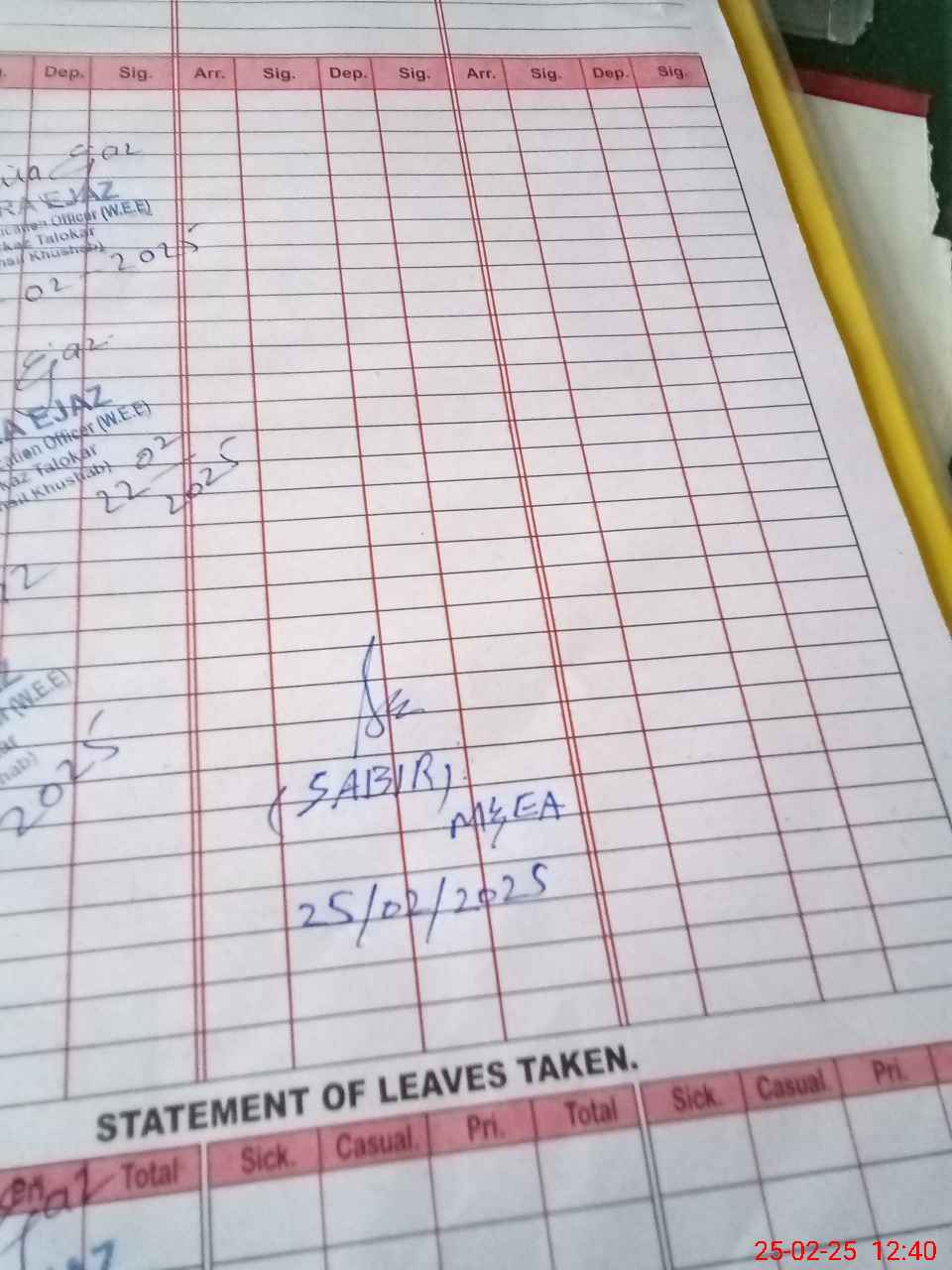 | CNIC | Full Name | Designation | R/C | Absence during last cal. month |