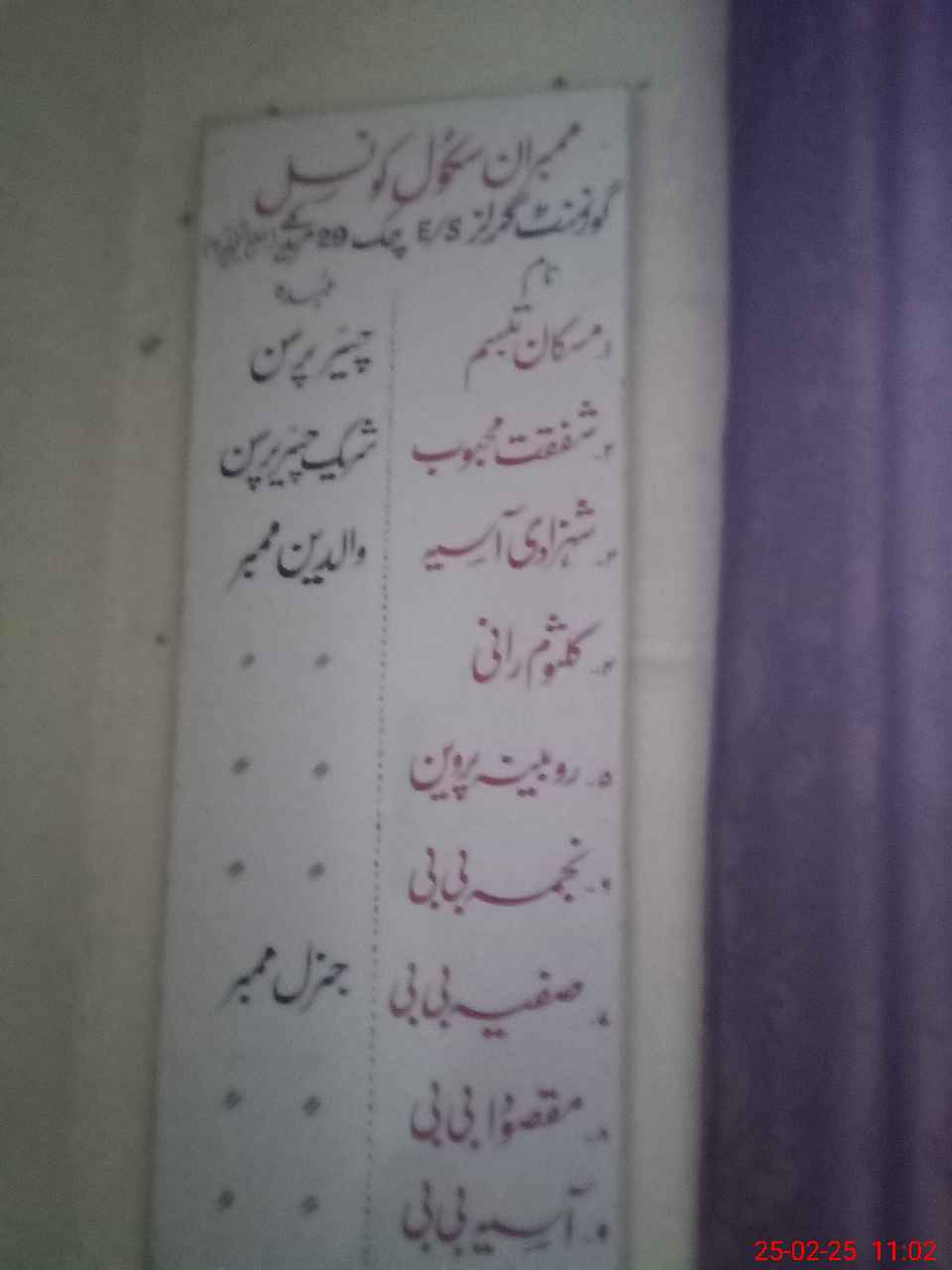 | District: SHEIKHUPURA | Tehsil: MURIDKE | Markaz: DAUKE-FEMALE | Level: Middle | |