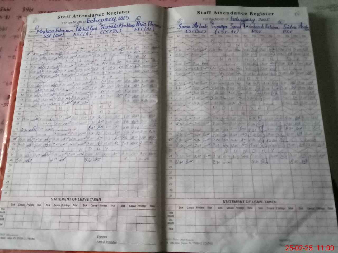 | Attendance Register | Head Teacher | MEA with School | Visit Proof |
