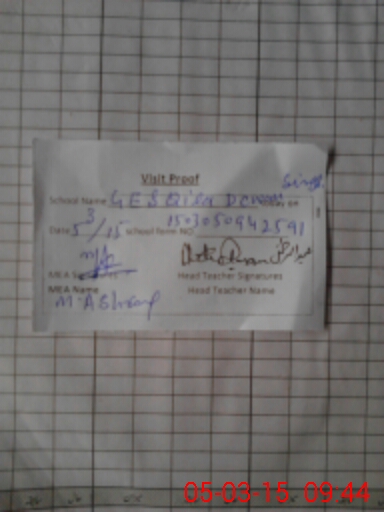 | Attendance Register | Head Teacher | MEA with School | Visit Proof |