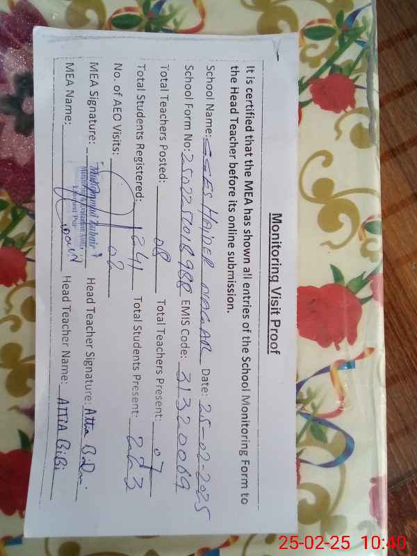 | Certified that this School was Inspected by the Undersigned MEA/DMO Today and the Information Stated Above is as Per Record. | |||||