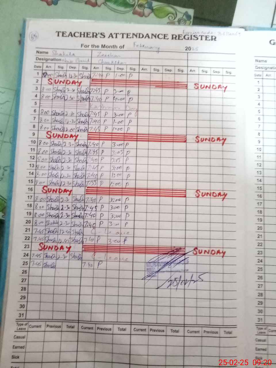 | CNIC | Full Name | Designation | R/C | Absence During Last Calender Month |