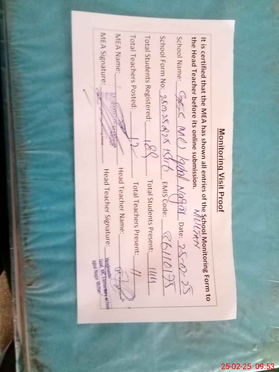 | EMIS Code: 36110175 | Name of School: GES MC IQBAL NAGAR | |||