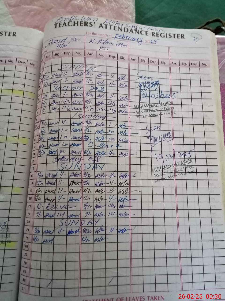 | District: OKARA | Tehsil: OKARA | Markaz: AKBAR - FEMALE | Level: Primary | |
