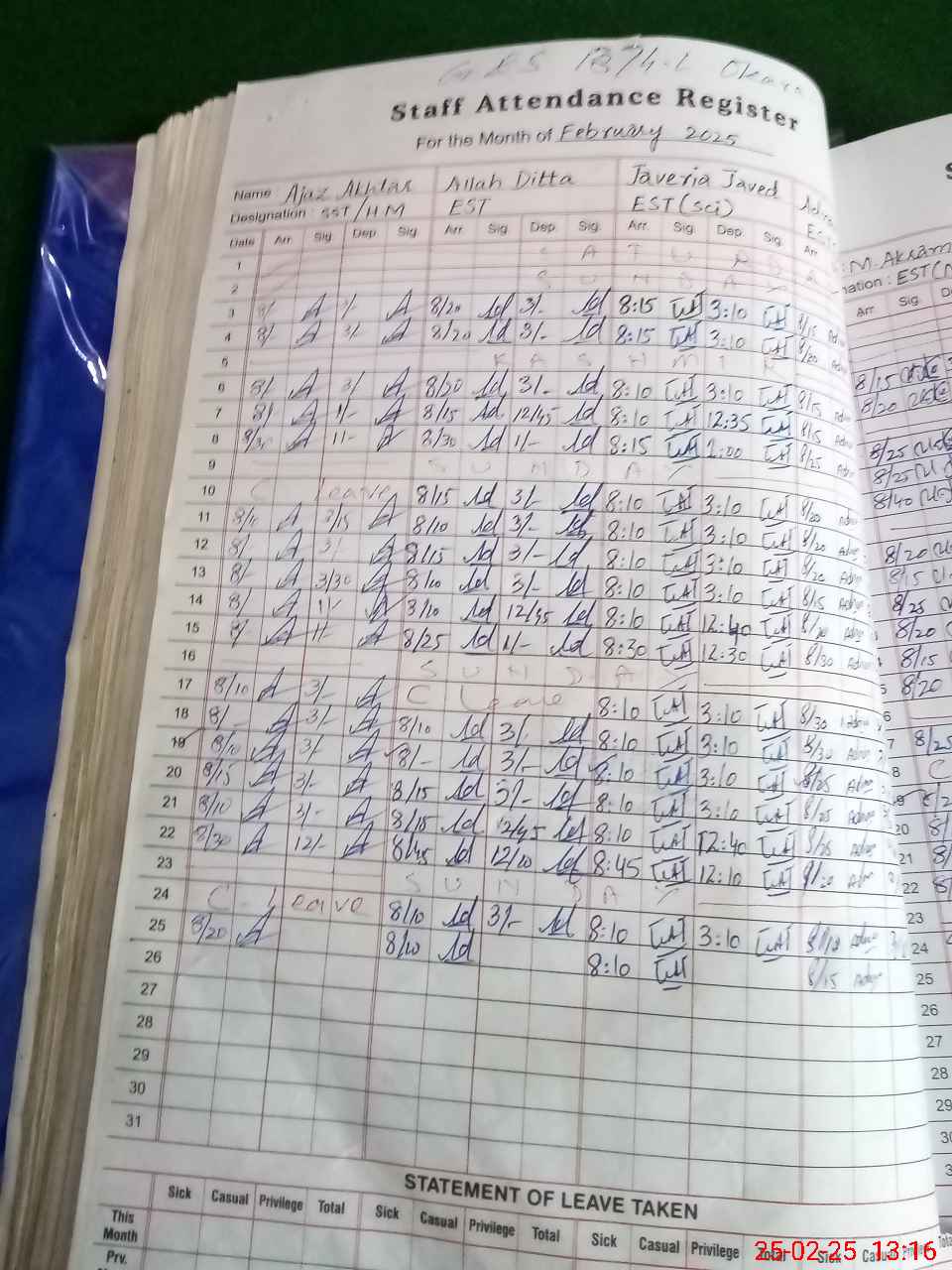 | Leave | Duty | Absent | Maternity | Medical | Ex- Pak |