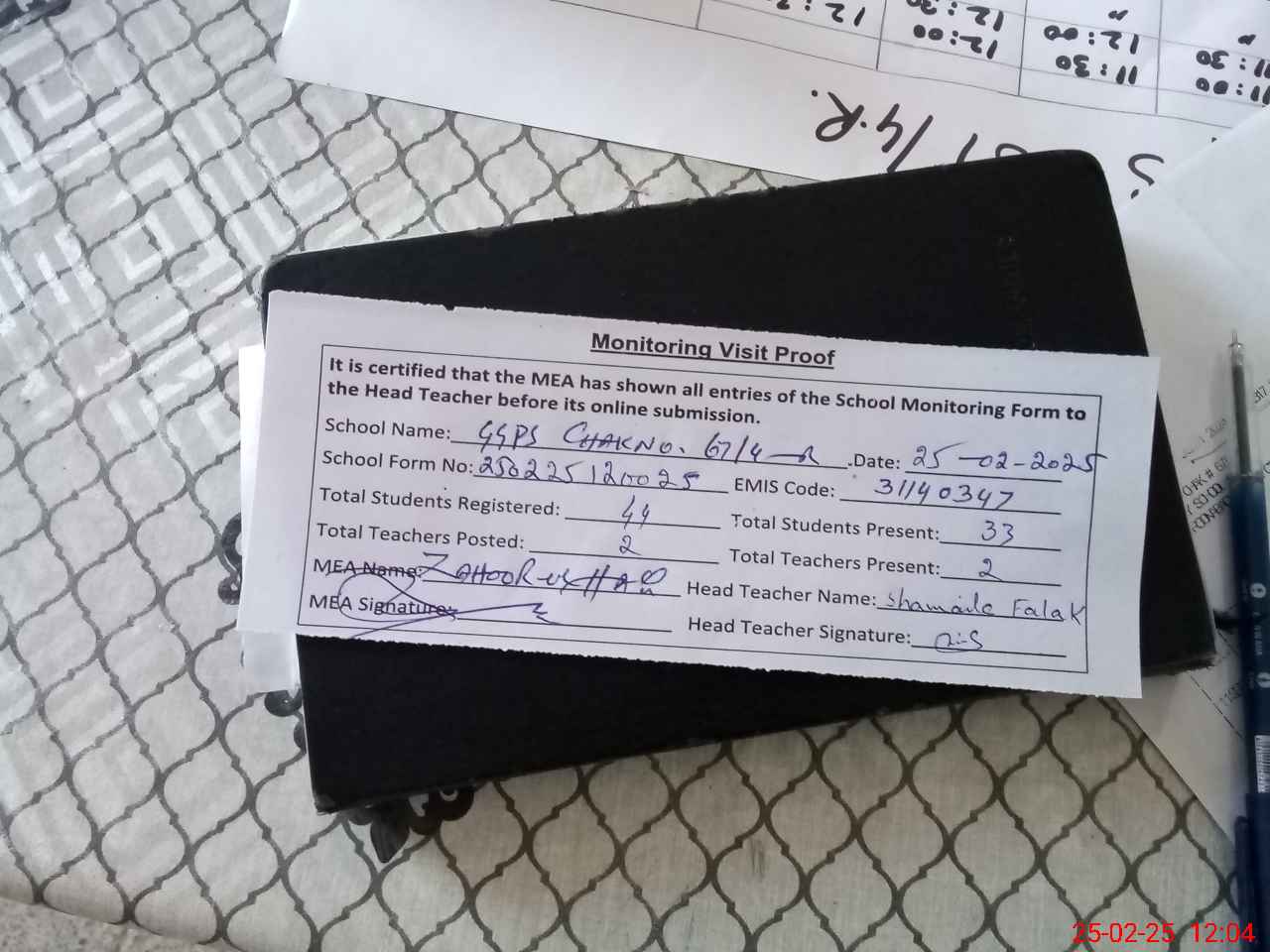 | EMIS Code: 31140347 | Name of School: GGPS CHAK NO 67/4-R | |||