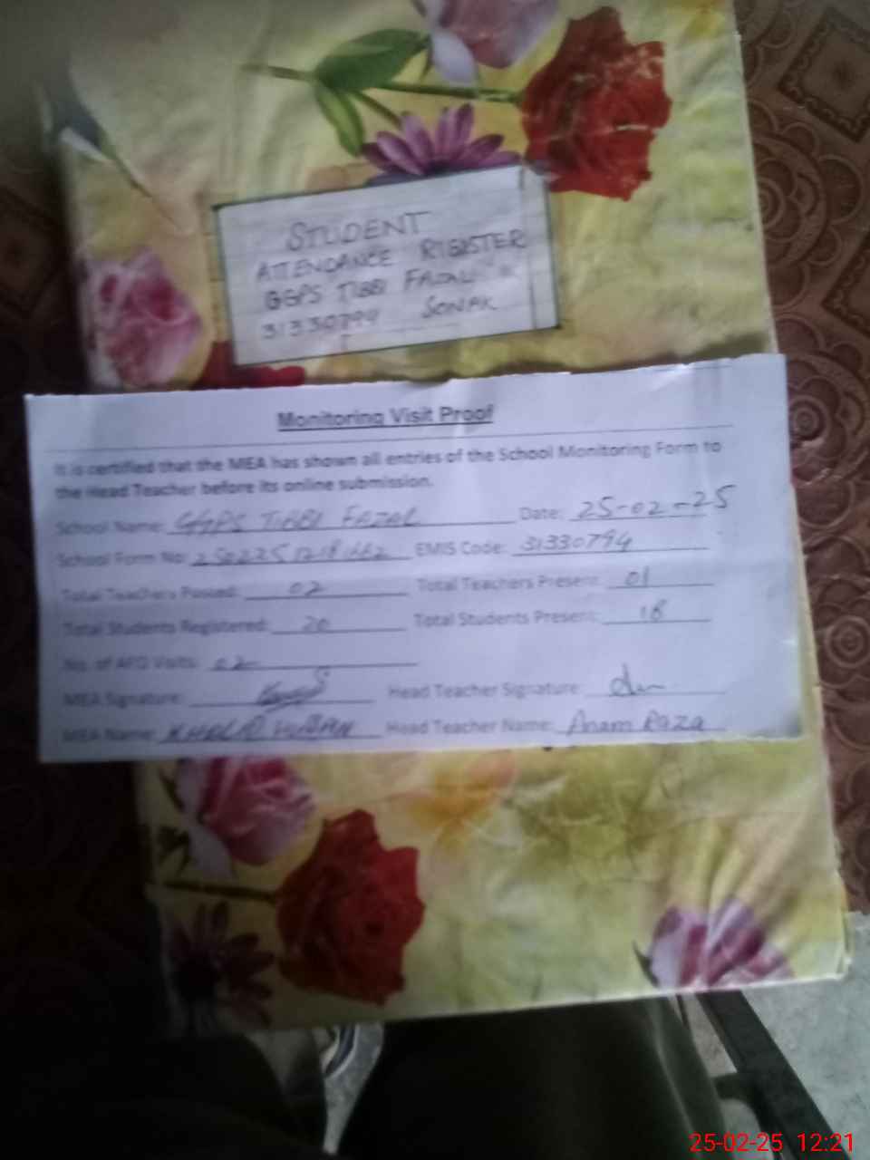 | EMIS Code: 31330794 | Name of School: GGPS TIBBI FAZAL | |||
