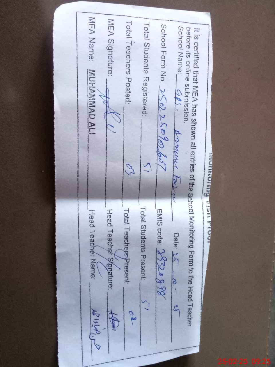 | Certified that this School was Inspected by the Undersigned MEA/DMO Today and the Information Stated Above is as Per Record. | |||||