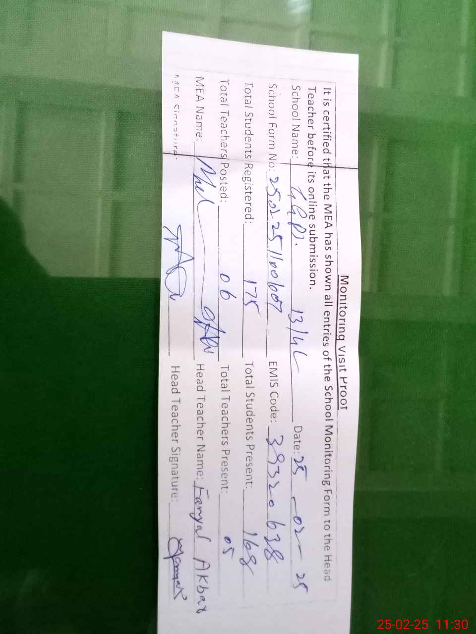 | Certified that this School was Inspected by the Undersigned MEA/DMO Today and the Information Stated Above is as Per Record. | |||||