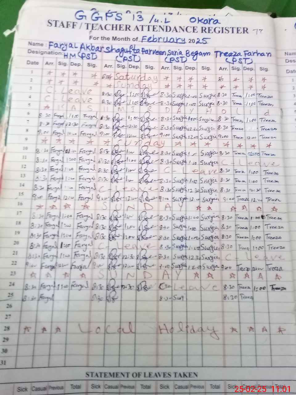 | 31**** | Is**** Ma**** | PST | Regular | 0 | 0 | 0 | 0 | 0 | 0 | 0 | 0 | 0 | Casual |