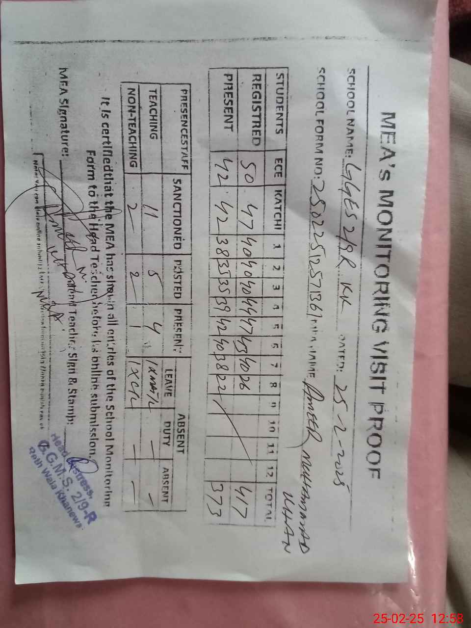 | Certified that this School was Inspected by the Undersigned MEA/DMO Today and the Information Stated Above is as Per Record. | |||||