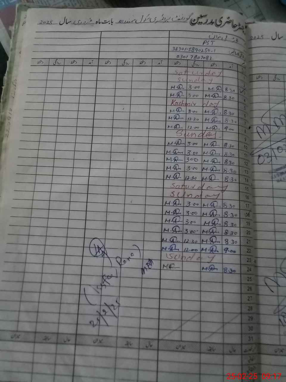 | Name: SA**** KH**** Designation: (School Headmaster's/Headmistress's) PST Phone/Cell Number: 03**** |