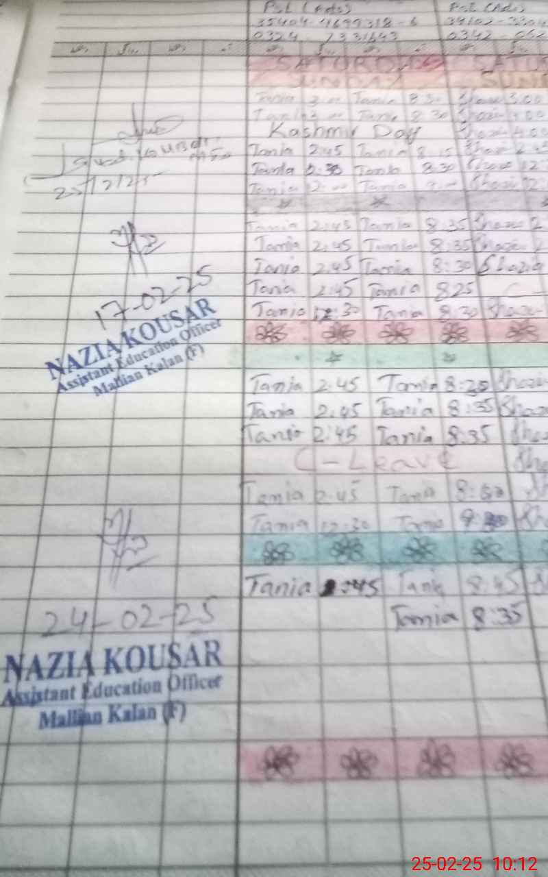 | Name: SH**** Designation: (School Headmaster's/Headmistress's) PST Phone/Cell Number: 03**** |