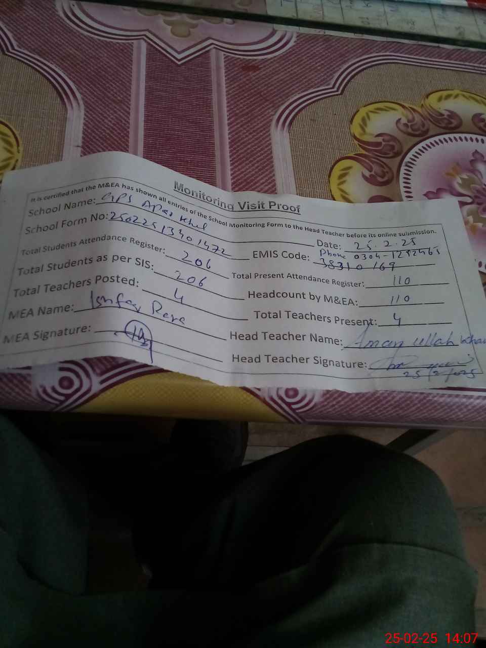 | Name: AM**** UL**** KH**** Designation: (School Headmaster's/Headmistress's) PST/PTC/JV Phone/Cell Number: 03**** |