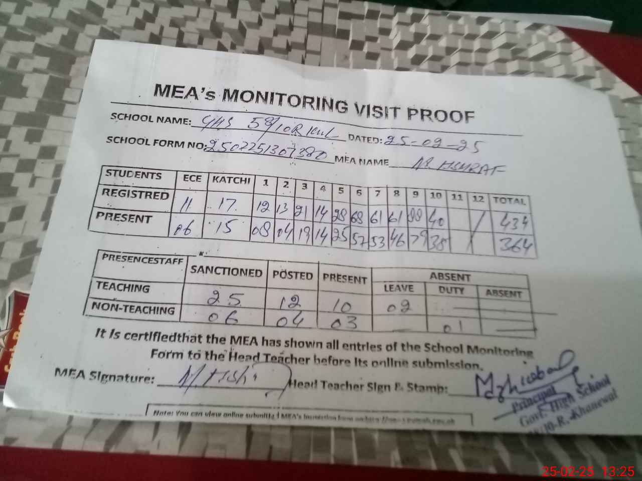 | EMIS Code: 36420071 | Name of School: GHS 58/10-R, KHANEWAL | |||