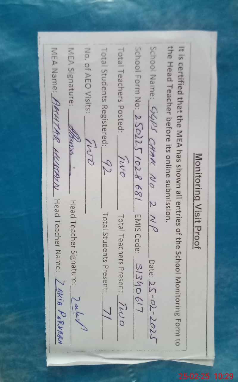 | EMIS Code: 31340617 | Name of School: GGPS CHAK NO.2/NP | |||
