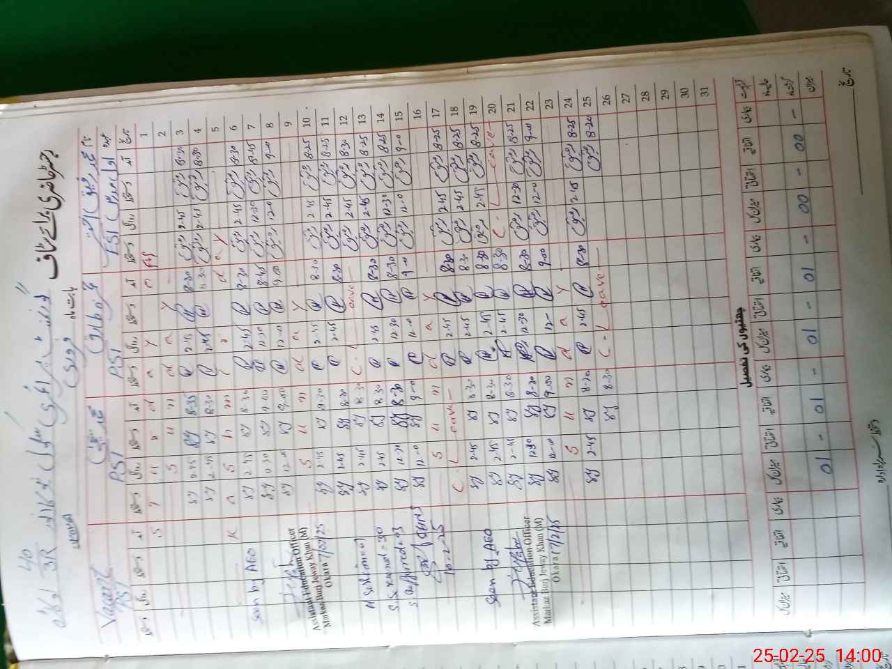 | CNIC | Full Name | Designation | R/C | Absence During Last Calender Month |