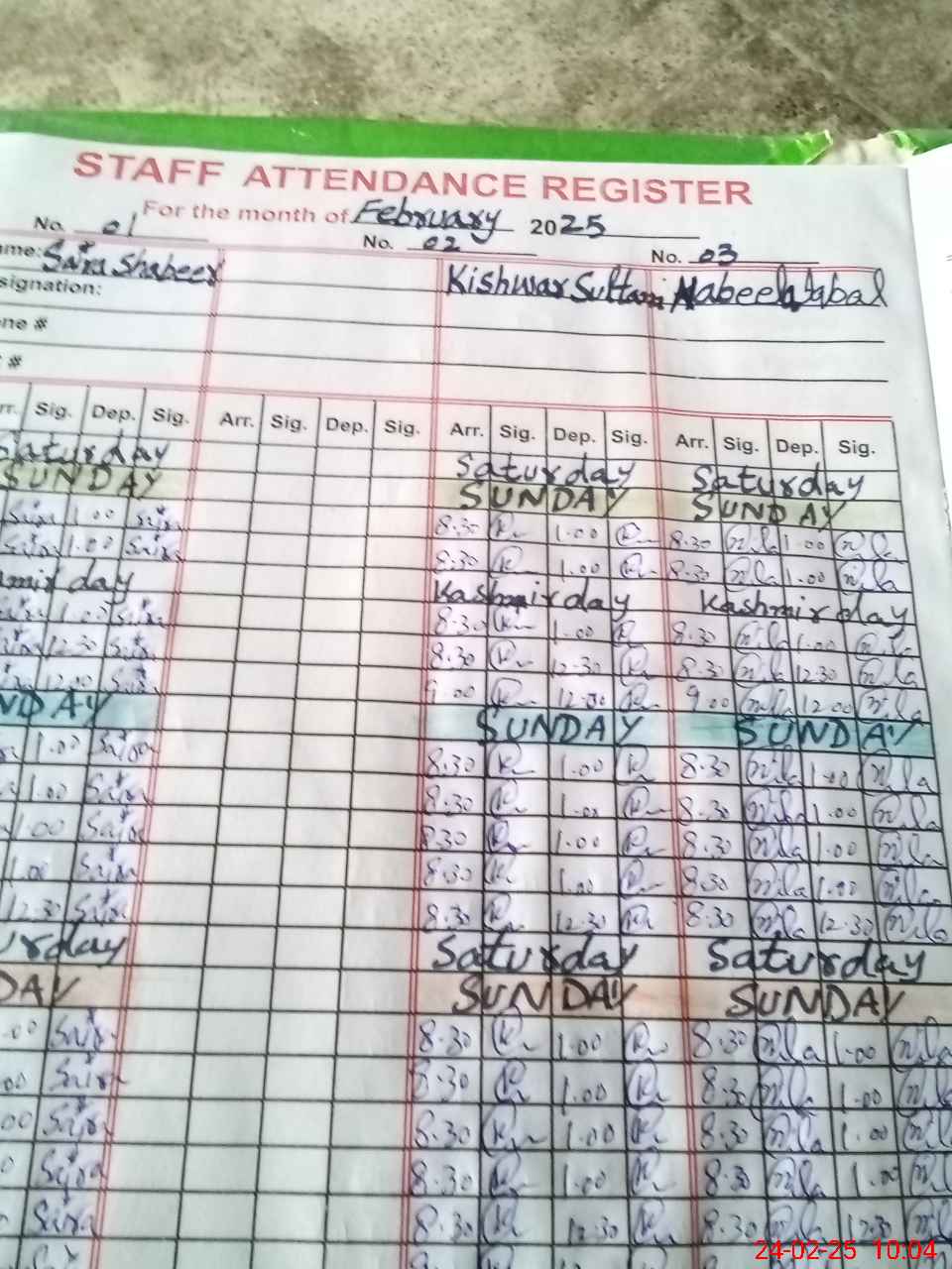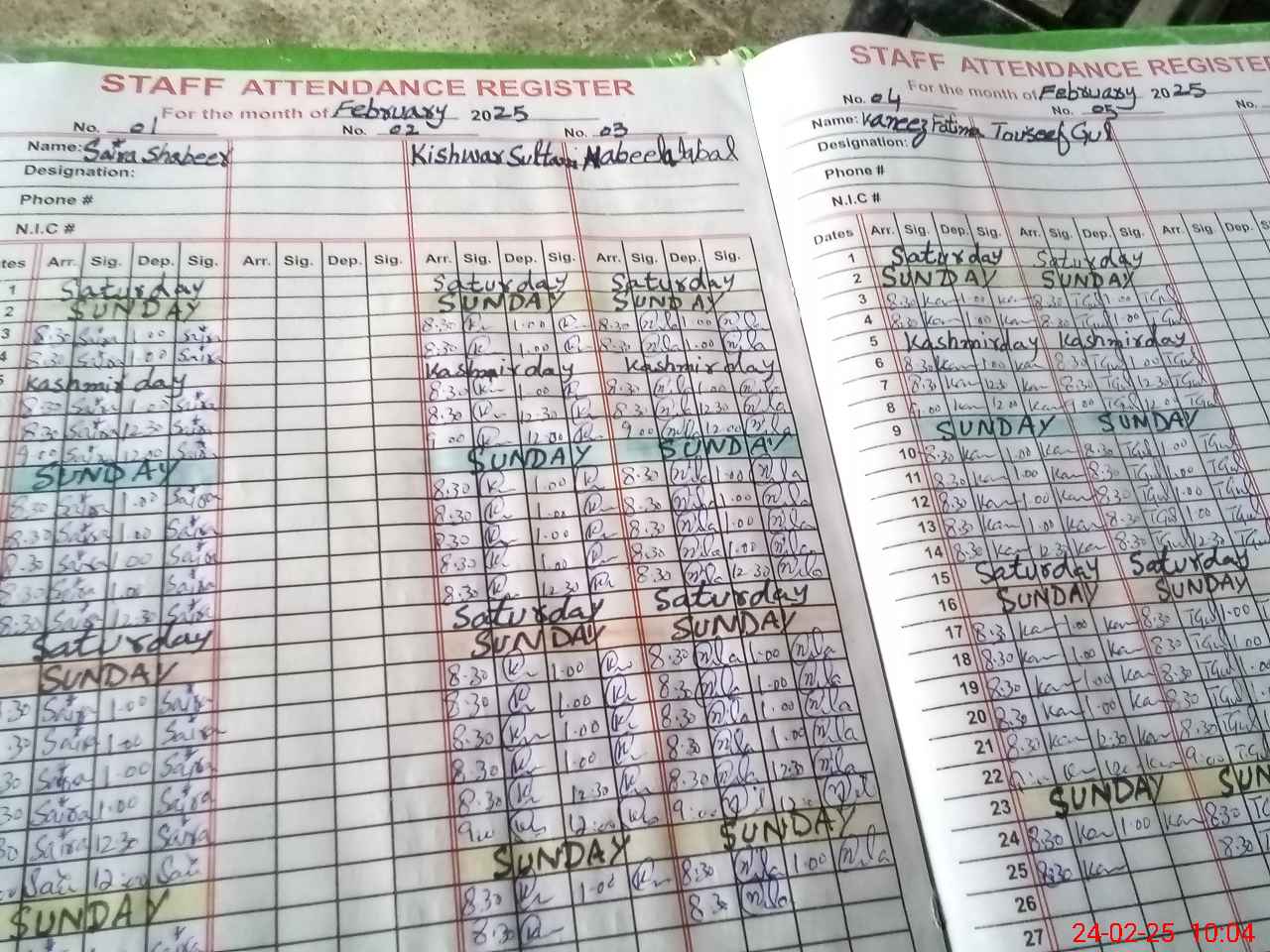 | CNIC | Full Name | Designation | R/C | Absence During Last Calender Month |