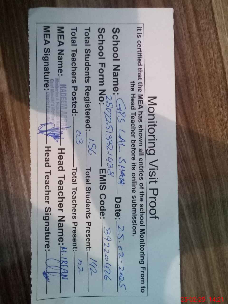 | EMIS Code: 39220476 | Name of School: GPS LAL SHAH | |||
