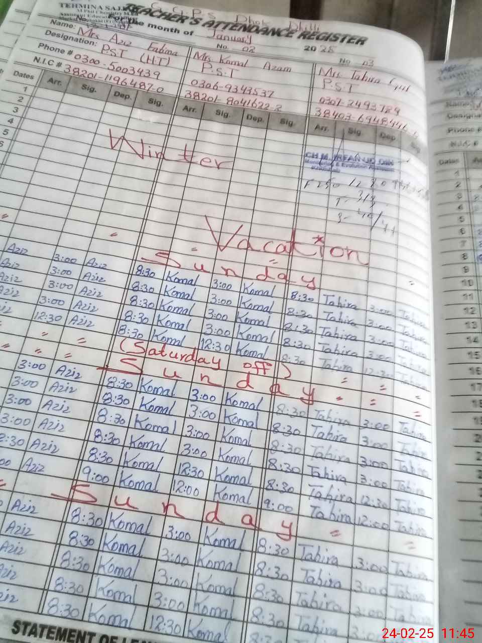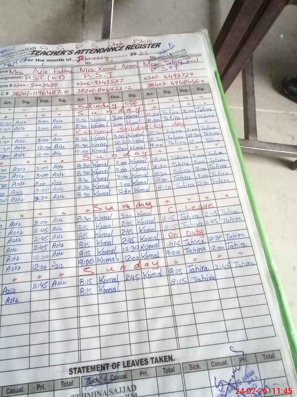 | Name: Az**** Fa**** Designation: (School Headmaster's/Headmistress's) PST Phone/Cell Number: 03**** |