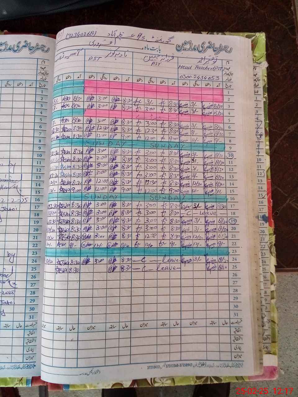 | Name: Mu**** is**** Designation: (School Headmaster's/Headmistress's) pst Phone/Cell Number: 03**** |