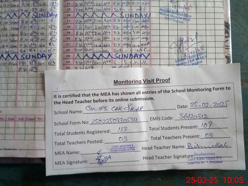 | EMIS Code: 36120312 | Name of School: GMPS CHAK SALAR | |||