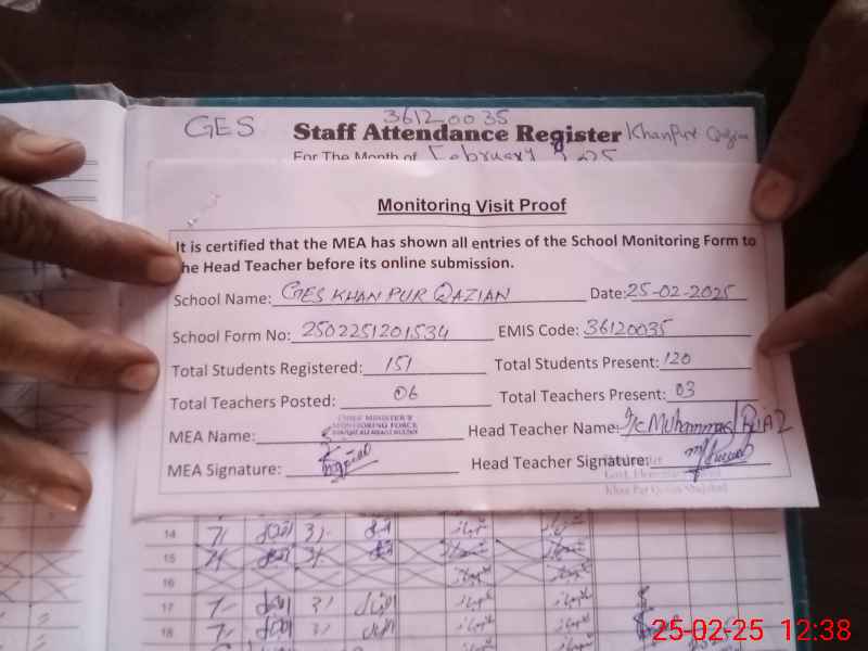 | EMIS Code: 36120035 | Name of School: GES KHANPUR QAZIAN SHUJABAD | |||