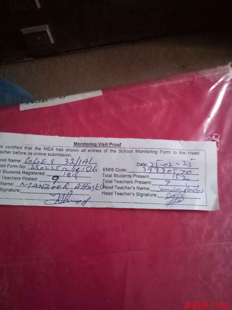 | Certified that this School was Inspected by the Undersigned MEA/DMO Today and the Information Stated Above is as Per Record. | |||||