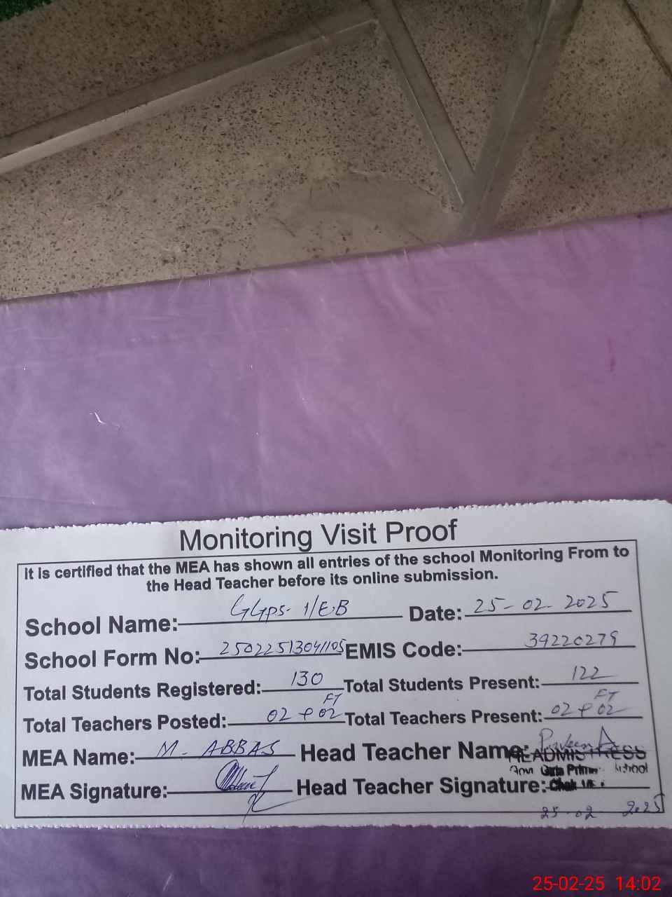 | EMIS Code: 39220279 | Name of School: GGPS 1 EB | |||
