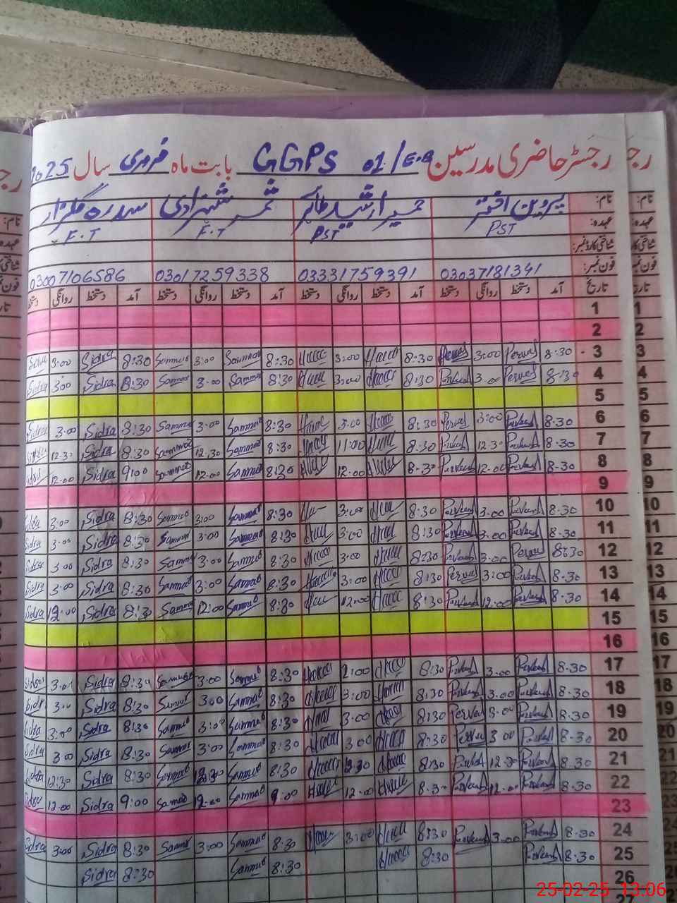 | Name: Hu**** Ra**** Designation: (School Headmaster's/Headmistress's) PST Phone/Cell Number: 03**** |