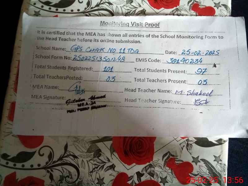 | EMIS Code: 38140234 | Name of School: GPS CHAK NO 11 TDA | |||
