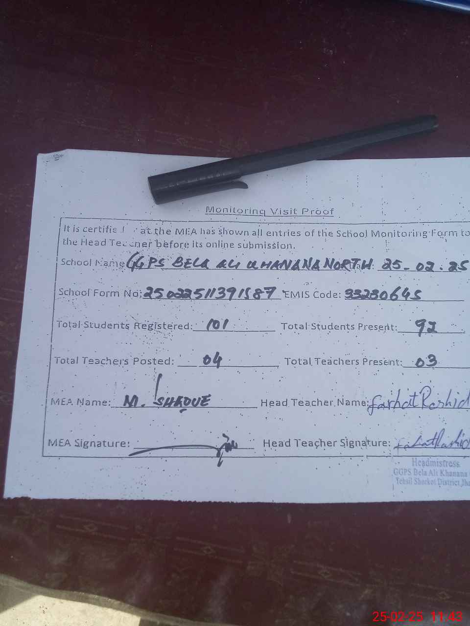 | EMIS Code: 33230645 | Name of School: GGPS BELA ALI KHANAN NORTH | |||