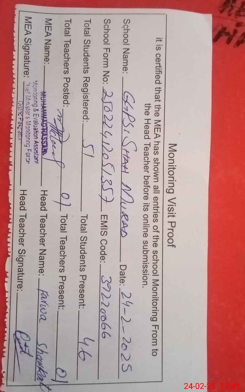 | EMIS Code: 39220066 | Name of School: GGPS SHAH MURAAD | |||
