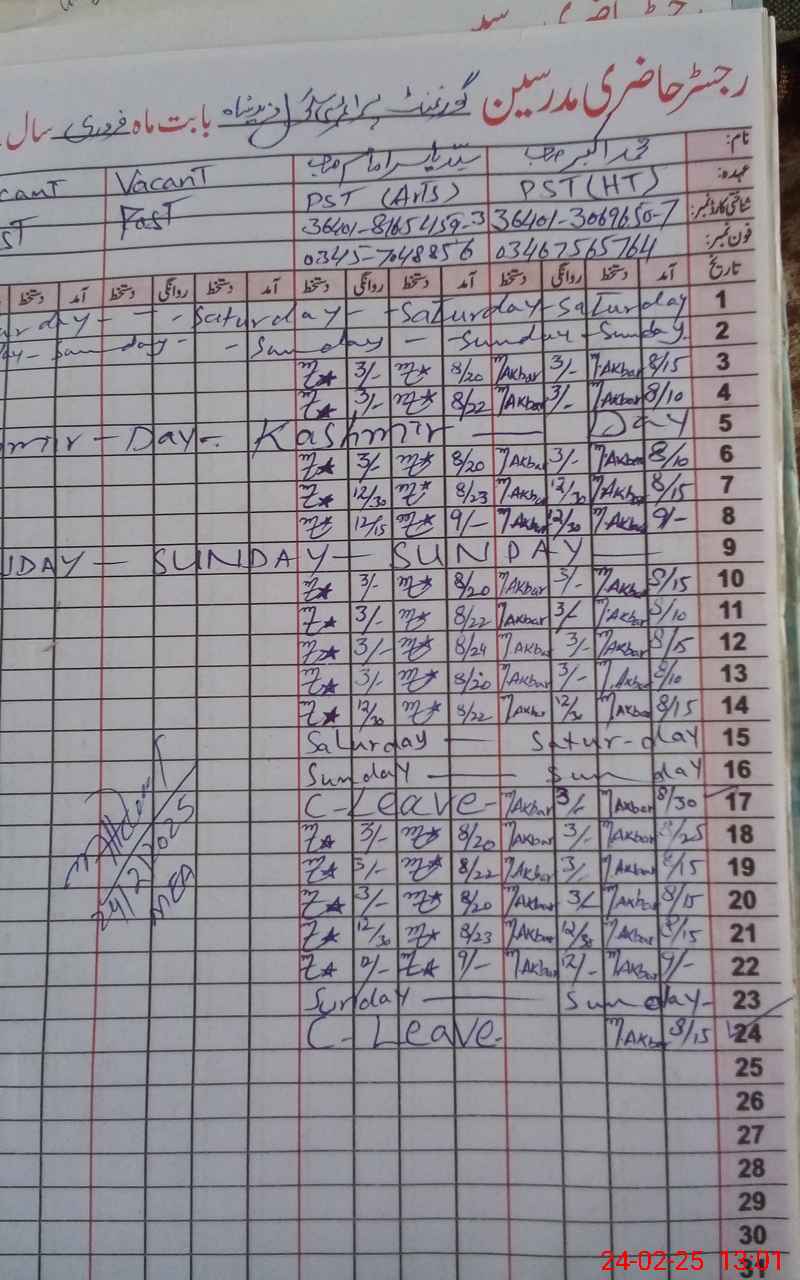 | Name: MU**** AK**** Designation: (School Headmaster's/Headmistress's) PST Phone/Cell Number: 03**** |