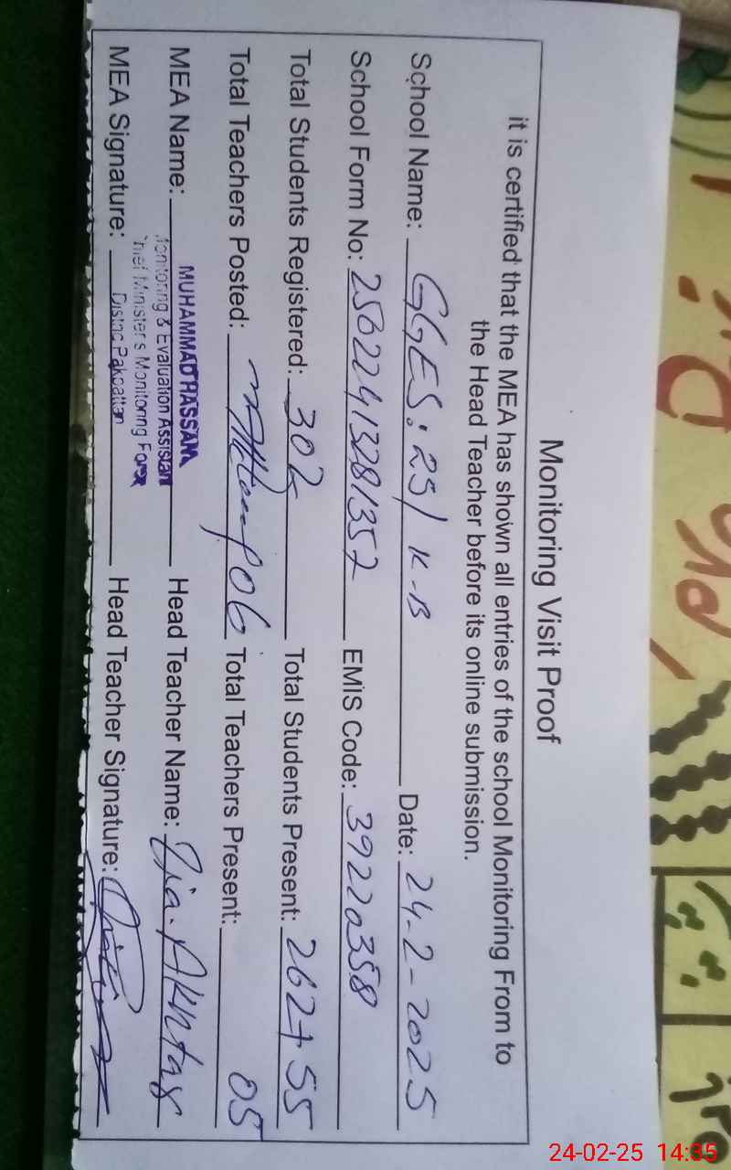 | EMIS Code: 39220358 | Name of School: GGHS 25 KB | |||