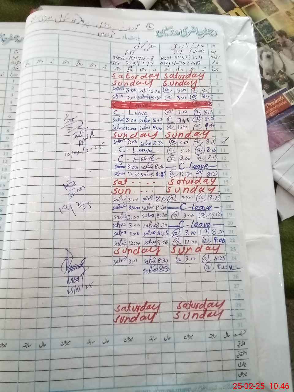 | Leave | Duty | Absent | Maternity | Medical | Ex- Pak |