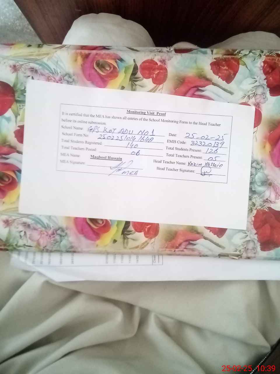 | EMIS Code: 32320139 | Name of School: GPS KOT ADU NO. 1 | |||