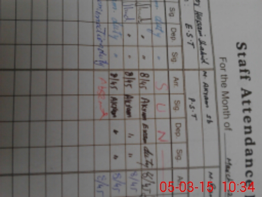 | Monitoring Date: 05-03-2015 | Start Time: 05-03-2015 10:11 AM | End Time: 05-03-2015 10:38 AM | Name of MEA: Sa**** Ak**** | |