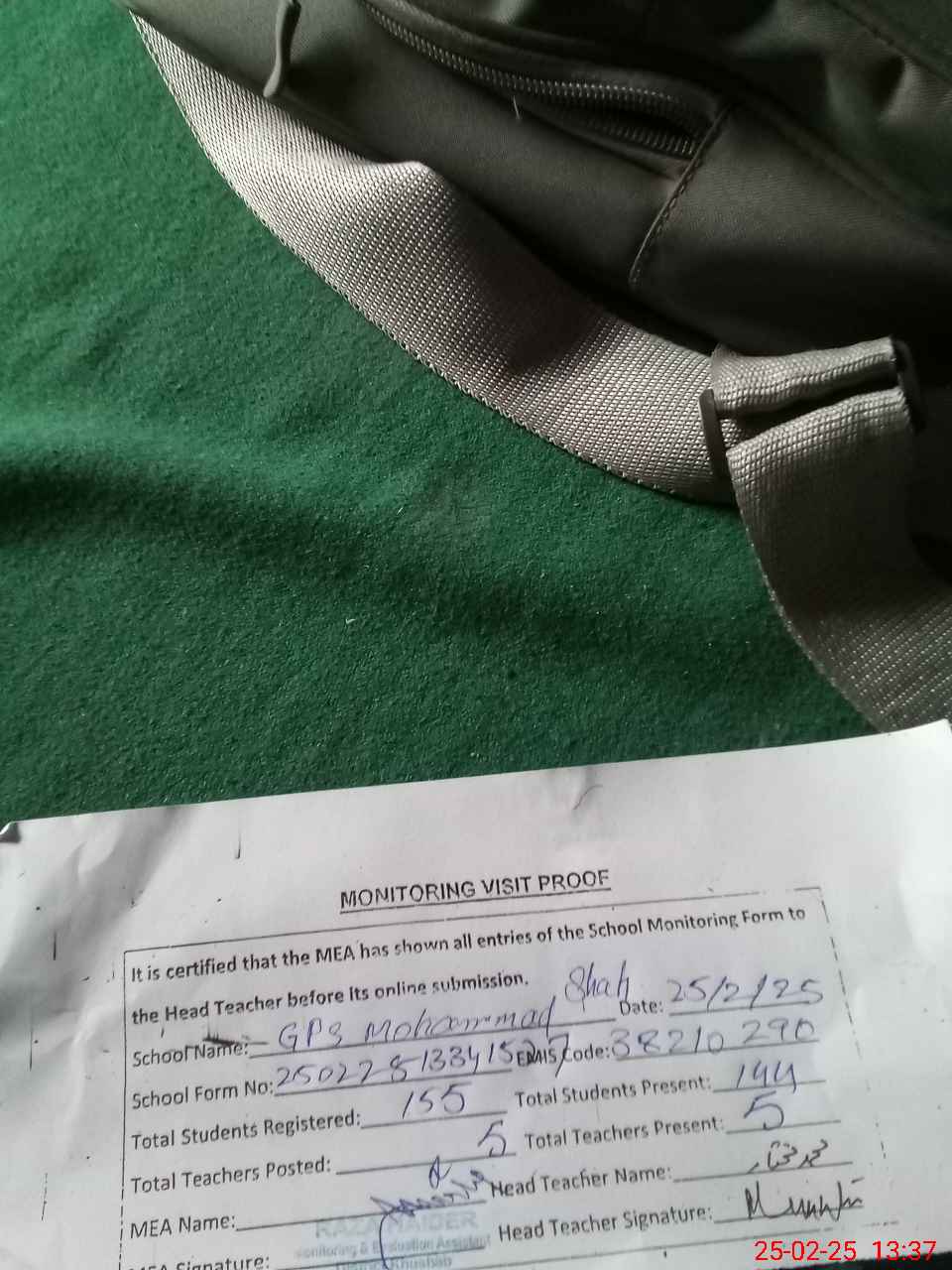 | Attendance Register | Head Teacher | MEA with School | Visit Proof |