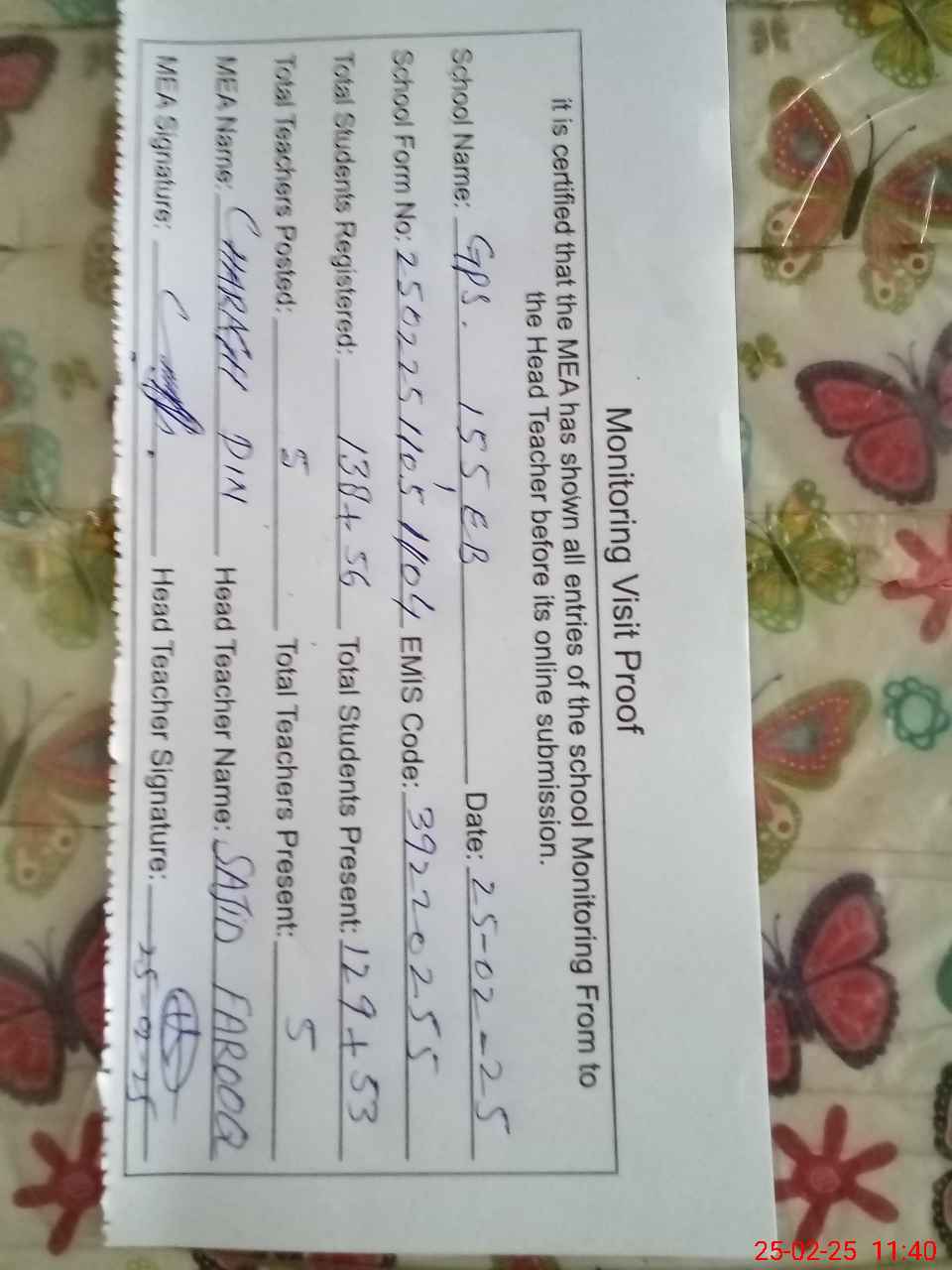 | EMIS Code: 39220255 | Name of School: GPS 155 EB | |||