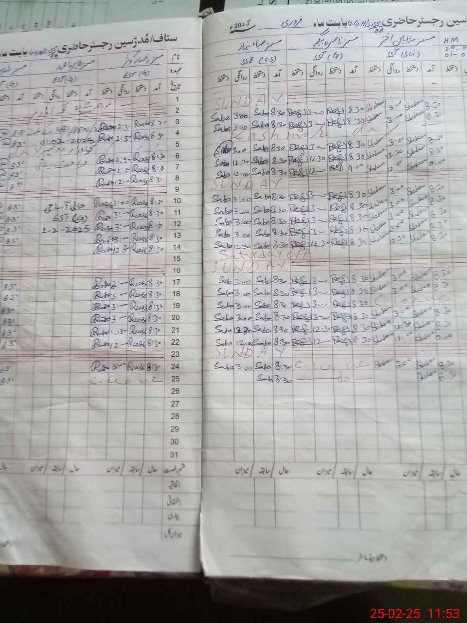 | CNIC | Full Name | Designation | R/C | Absence During Last Calender Month |