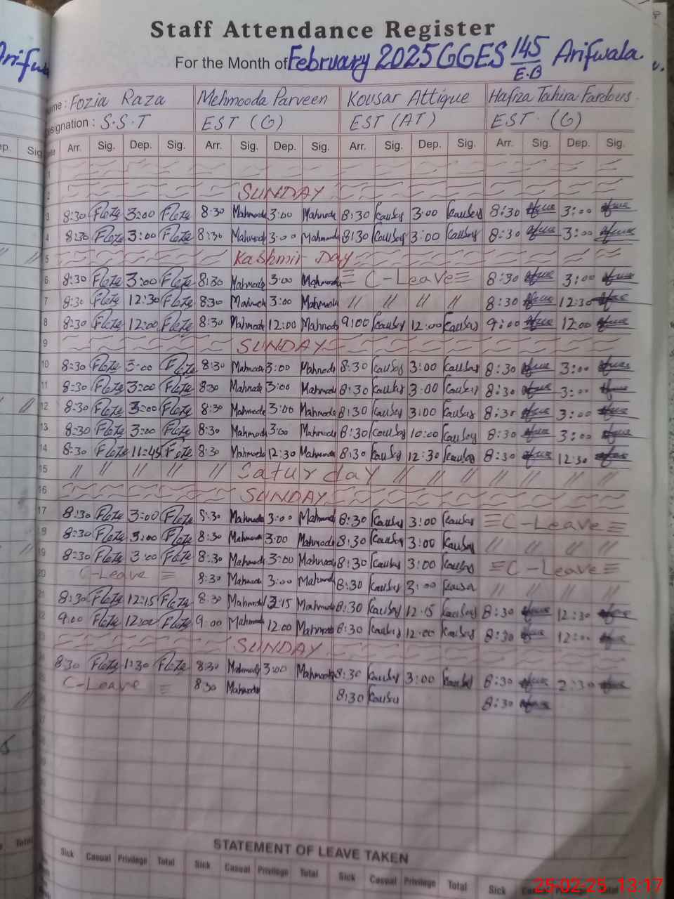 | Name: FO**** RA**** Designation: (School Headmaster's/Headmistress's) S.S.T.(GENERAL) Phone/Cell Number: 03**** |