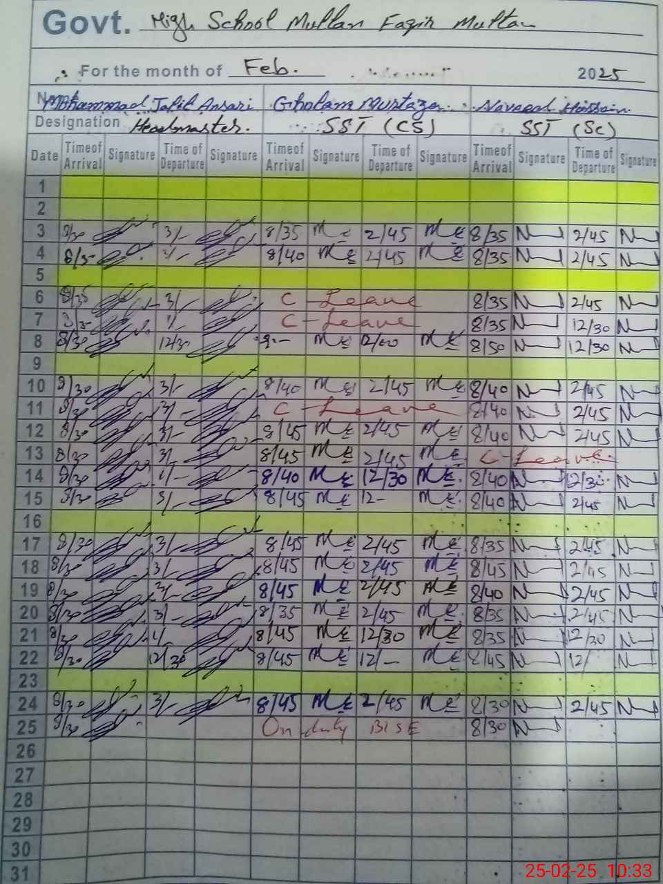 | 35**** | Mu**** Az**** Qa**** | EST | Regular | 0 | 0 | 0 | 0 | 0 | 0 | 0 | 0 | 0 | Exam Duty |