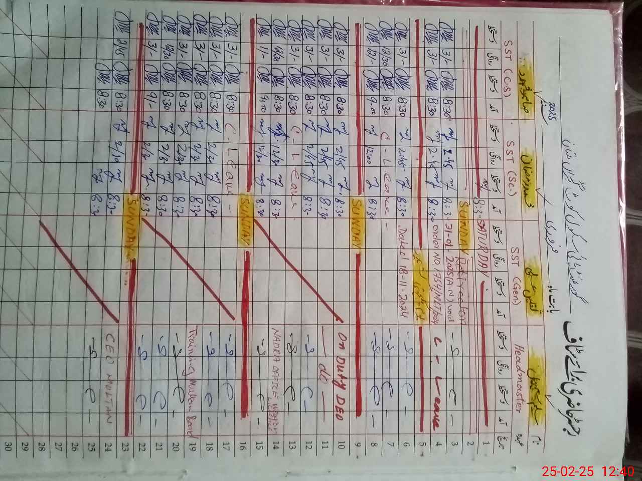 | CNIC | Full Name | Designation | R/C | Absence During Last Calender Month |