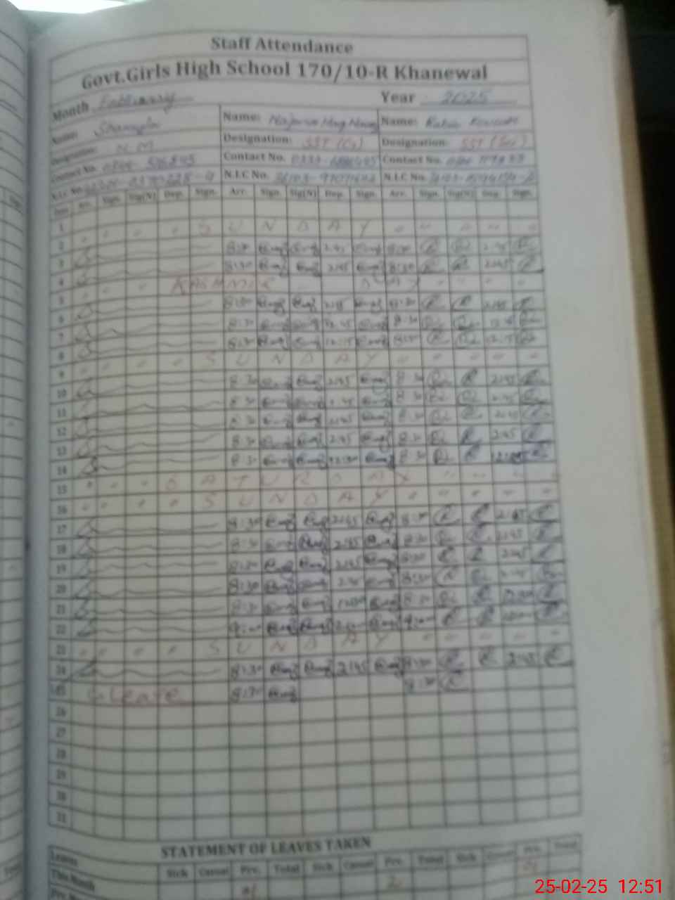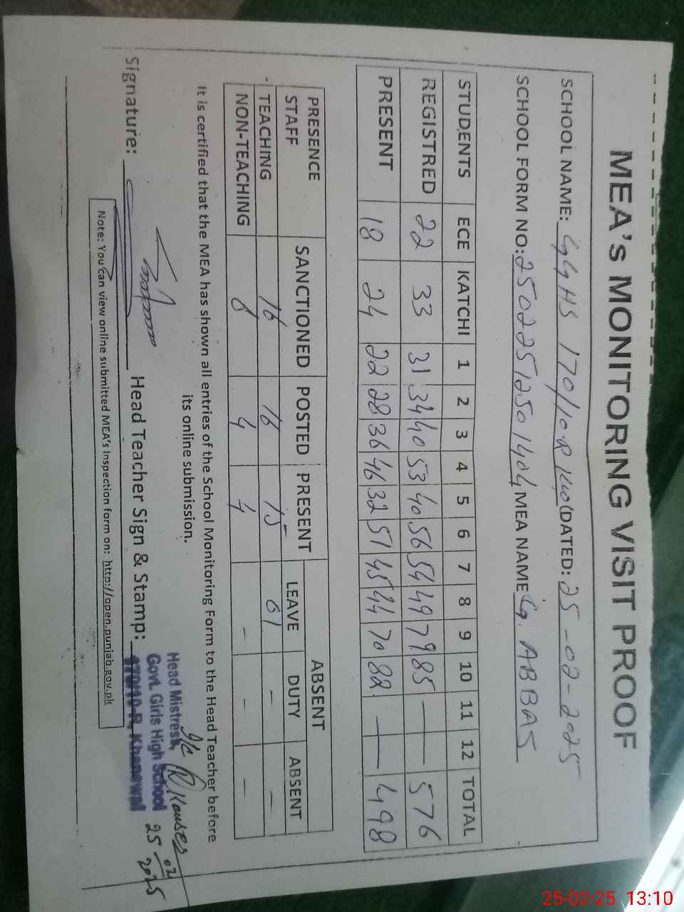 | EMIS Code: 36420094 | Name of School: GGHS 170/10-R, KHANEWAL | |||