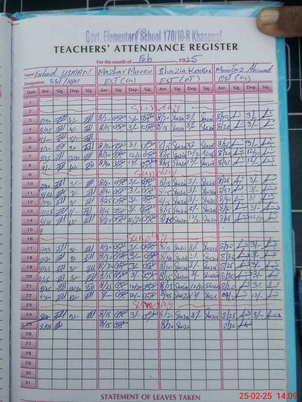 | EMIS Code: 36420069 | Name of School: GES 170/10-R, KHANEWAL | |||