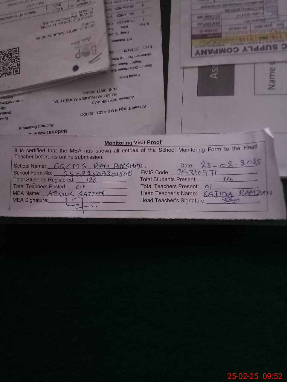 | EMIS Code: 39310971 | Name of School: GGCMS RAM PRASHAD | |||