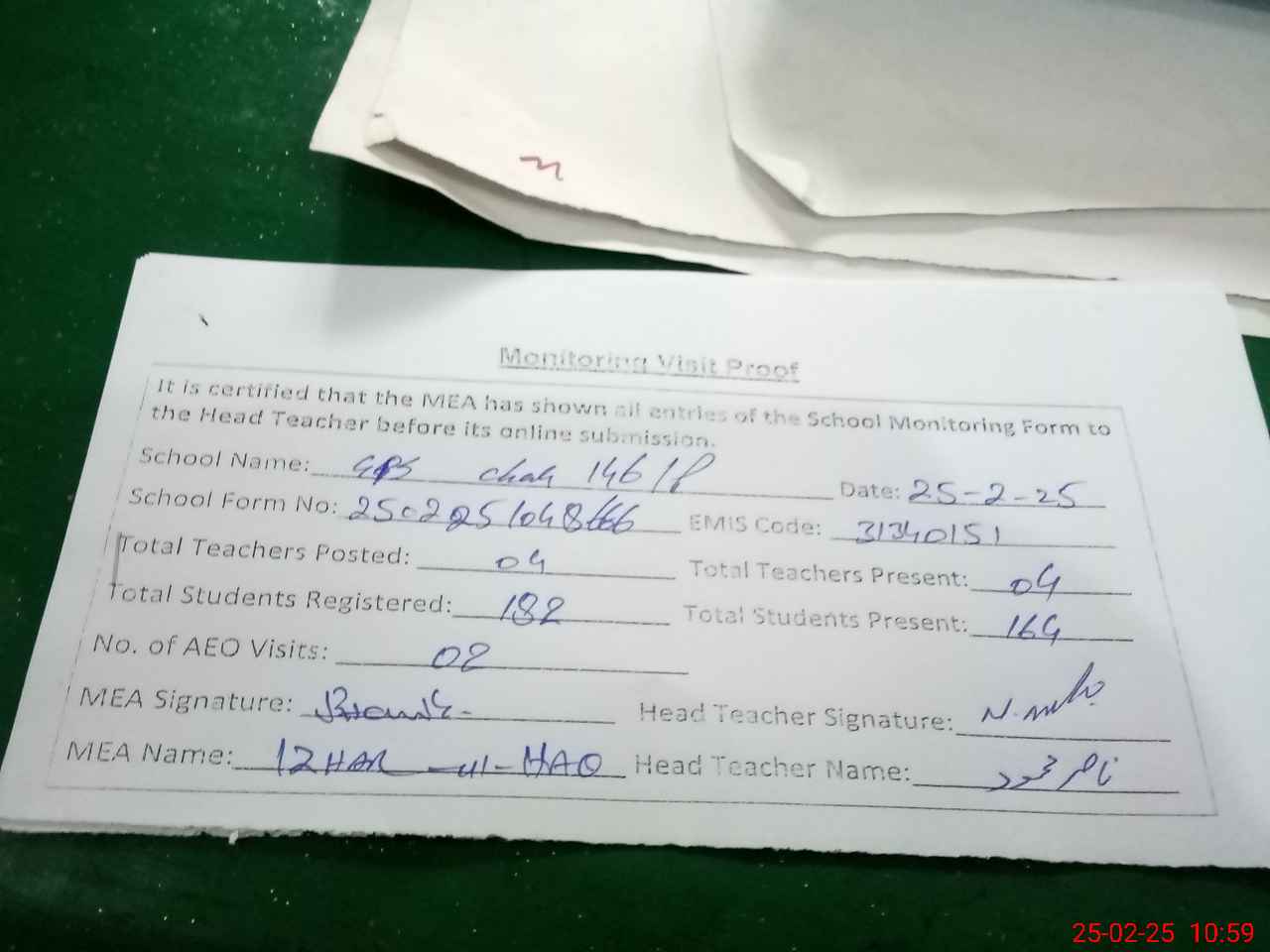 | Monitoring Date: 25-02-2025 | Start Time: 25-02-2025 10:35 AM | End Time: 25-02-2025 11:00 AM | Name of MEA: Mu**** Iz**** UlHa**** | |