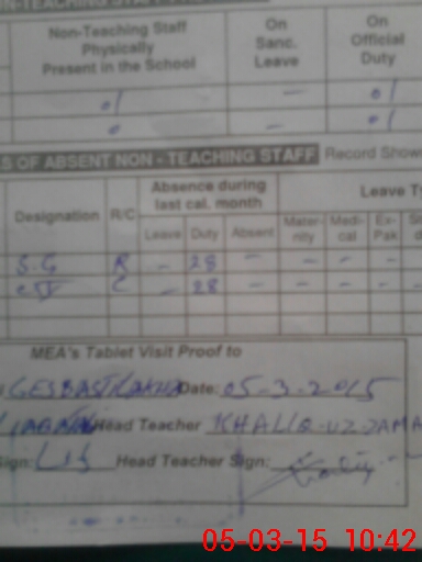 | Attendance Register | Head Teacher | MEA with School | Visit Proof |