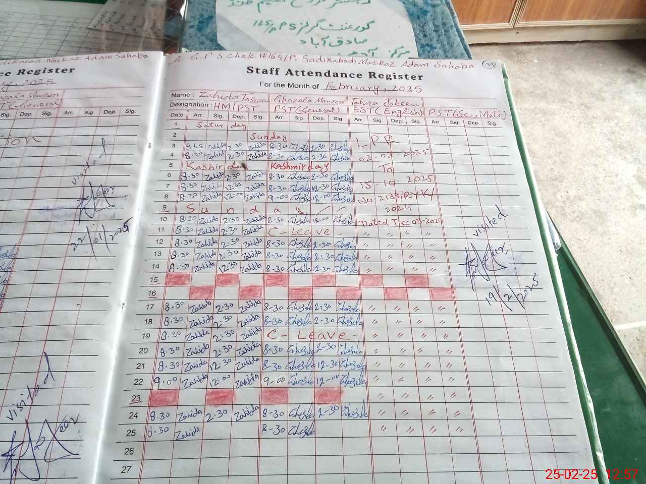 | CNIC | Full Name | Designation | R/C | Absence During Last Calender Month |